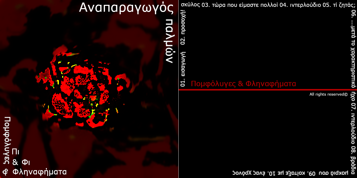 Λούπες, εμμονές, σιωπηλές, ανήσυχες και ταραγμένες αφηγήσεις, μια ανάγκη που εκτίθεται, με τη μορφή κάποιας κενής, ναρκισσιστικής, τρόπον τινά, μουσικής ή μη, παράστασης. Εικόνες, σκέψεις, ιδέες, ημερολογιακά καταγεγραμμένες, όχι σε λέξεις μόνο, μα σε κάθε στοιχείο, ένα προς ένα, της κάθε παραγωγής. Ένα χρονογράφημα, ίσως, των κρυφών διαθέσεων, μια προσπάθεια συμφιλίωσης με όσα, πιθανόν, δεν είναι φανερά, μια σειρά μουτζούρες από μελάνι μιας χαλασμένης πένας, σε ένα γράμμα που δεν ταχυδρομήθηκε.